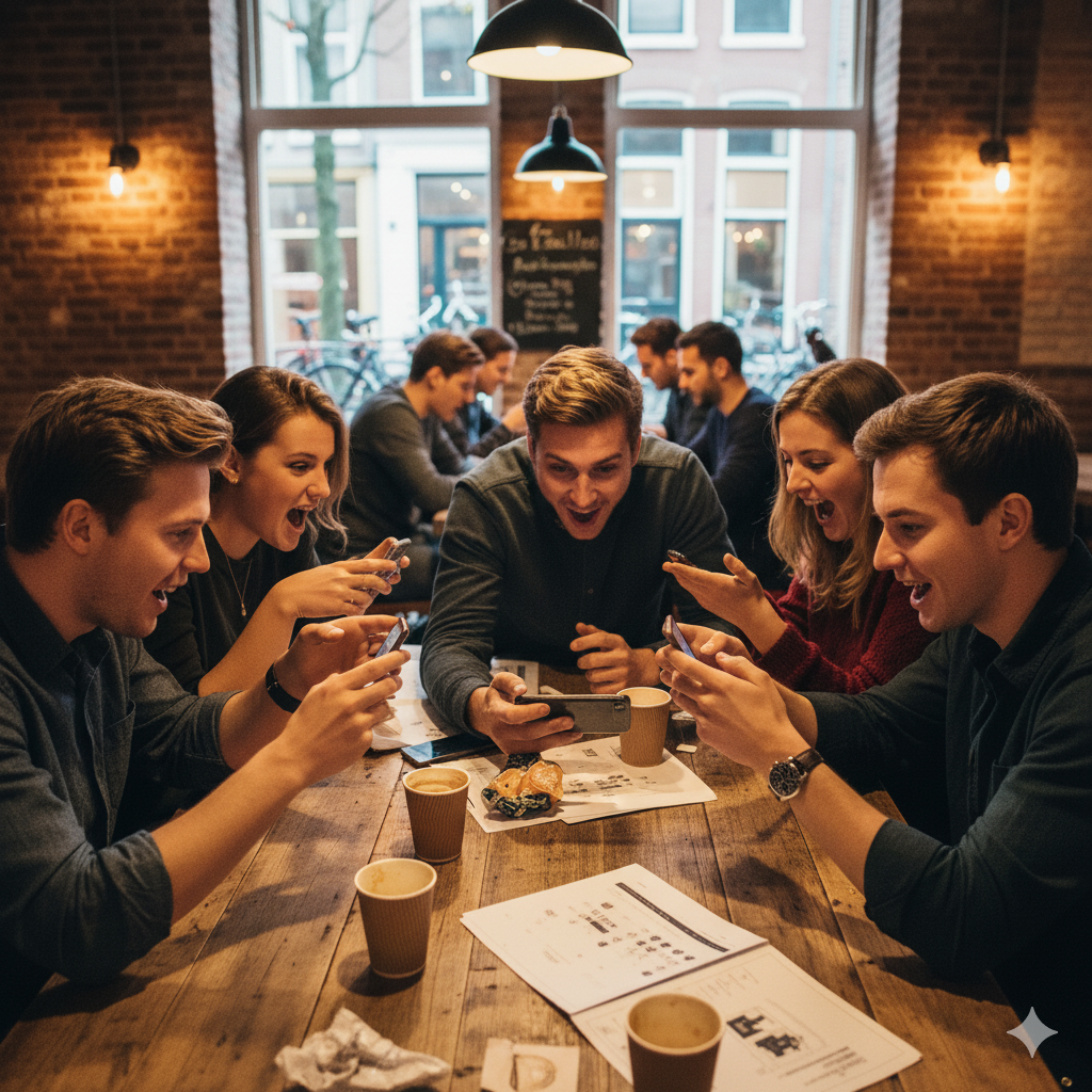 Codekrakers speel je op je eigen locatie: thuis, op kantoor, in een café of restaurant. Alles wat je nodig hebt is een tafel met wat stoelen of krukken en natuurlijk een opgeladen telefoon.